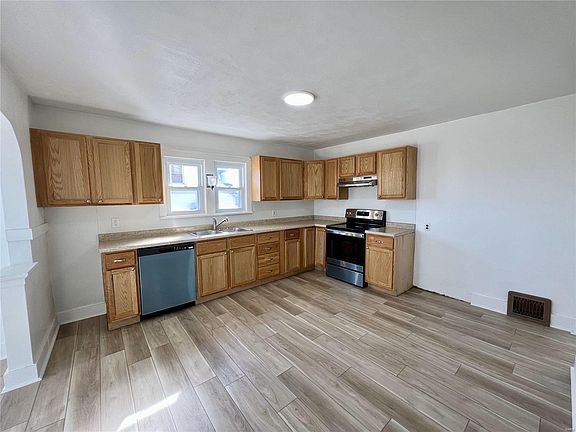 You can simply move right into this adorable 1.5 story home. This home offers 1190 sf of living area with 4 bedrooms and 1 full bath. Step inside the arched front door and you’re greeted by a spacious living room with lots of natural lighting from the updated vinyl windows. This main level houses 2 bedrooms and a full bath. The large eat-in kitchen offers oak cabinetry, a newer dishwasher and stove as well as an adorable breakfast nook. Upstairs you’ll find 2 additional bedrooms. This home has newer laminate flooring through the living areas and new, warm carpet in all of the bedrooms and fresh paint as well. A full basement has had some professional foundation repairs and offers plenty of room for storage. There is an enclosed porch at the back of the house, great for hanging coats and shoes before entering the home. You can also enjoy the deck overlooking the level backyard. This home offers off-street parking and a location where walking to get what you need is super easy.