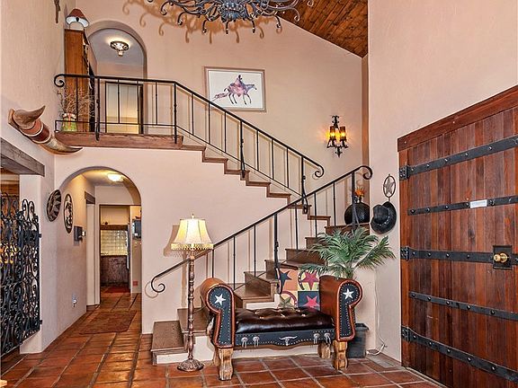 Imagine your own Spanish Villa on .95 acres nestled on Craig's Hill! Indulge yourself in quality custom home building that you must see to appreciate! Entertain in this 6,492 SF Villa that boasts 4 bedrooms, 4.5 baths, massive architecture with a blend of texture and wood including antique wood beams, 18 ft vaulted ceiling in Great room, skylights, private courtyard w/ fountain, Adobe brick fireplace, indoor pool with jacuzzi, custom wrought iron rail staircase, mature landscape w/ privacy!