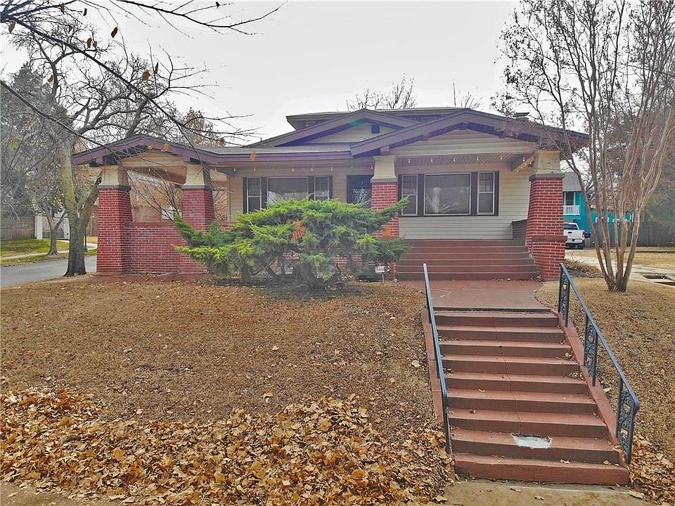 Reduced and Back on the market! Location, Location, Location! A historical treasure in the midst of Oklahoma's finest neighborhoods. You will fall in love with the wrap around porch, a true window on the world as this home sits high on the treed lot and overlooks tree lined streets of stately homes. Huge wood framed windows and the large room sizes give this beautiful home limitless possibilities Original red brick exterior, additional concrete off street parking and a 4 year old 2 car garage are just a few of the amenities this home offers. The possibilities are endless because of the spaciousness of the rooms. 2 bedrooms on the main level and one bedroom and bathroom upstairs. Iron fence encloses the backyard. Hurry to make this grand gem your own fabulous home.