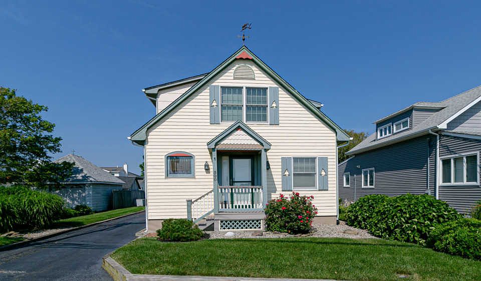 Located one block from Monmouth Beach! Welcome to the most adorable, water view home on the market! Aside from charm, this home also offers 3 generous sized bedrooms and 2 full bathrooms. The master bedroom presents a water view perfect for starting and ending your day with a sunrise and sunset. The downstairs, open floor plan flows wonderfully for entertaining guest who visit you at the Shore. Head outside onto your back deck overlooking the yard and relax with an ocean breeze. When pulling into your extended driveway, which offers ample parking for friends and family during the popular beach season, you are met by a spacious 2 car garage. The garage is perfectly built out for a workshop and finished space combination with a bathroom. Potential living space or rental and Air BNB income!