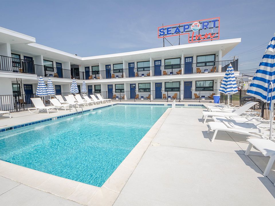 Just in time for summer, own your piece of North Wildwood at Seaport Inn Condominiums! This top floor condo features two bedrooms each with their own en-suite full bathroom, modern white kitchen, quartz counters, stunning marble backsplash, stainless steel appliances and a spacious open concept living area. Condo is complete with washer/dryer in unit, shared pool PLUS assigned 2 car parking! Newly renovated inside and out, including updated plumbing, electric, pex water lines, spray foam insulation plus newer roof. There are only 9 units in this boutique year round building! Incredibly located on the corner of 5th & Ocean Avenue, 1 block to the beach, steps to the seawall and entertainment district. Condo fees include ALL utilities, cable and internet.