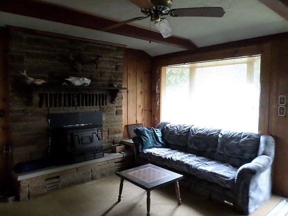 2 bedroom home with 78 ft of canal front, kayak or small boat to Houghton Lake. Home has knotty pine interior with wood burning insert for that cozy cottage feel. There is a 1 car attached garage, owner was finishing as extra living space or convert back to garage, and a large enclosed sun porch.