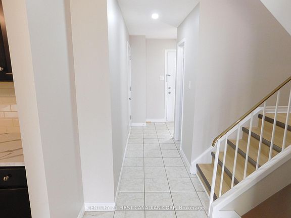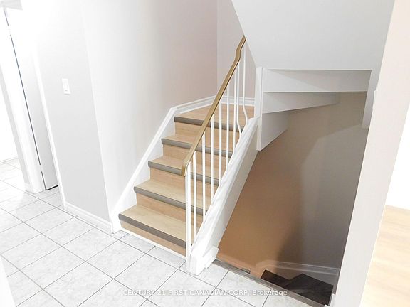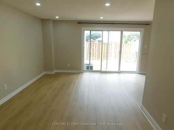 End unit spacious two storey townhouse with a single garage with opener. foyer with ceramic tiles. Kitchen with plenty of cupboards, backsplash, four stainless steel appliances including new fridge and dishwasher Aug 2025. Living and dining room with new vinyl flooring and pot lights with patio door open to the private good size fenced back yard. Three good size bedrooms with extensive pot lights and new closet's doors including the huge master with big sliding door open to its own private balcony, finished basement completely updated 2018 with tiled floors laundry & 3-piece bathroom, pot lights and L shaped recreation room. Updated furnace & AC 2012 and electrical panel 2019. Updated bathrooms. Freshly painted with neutral colours. New vinyl planks flooring second floor and stairs. Carpet free home. Close to shopping, HWY 401, schools. Condo fee is including water.