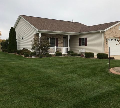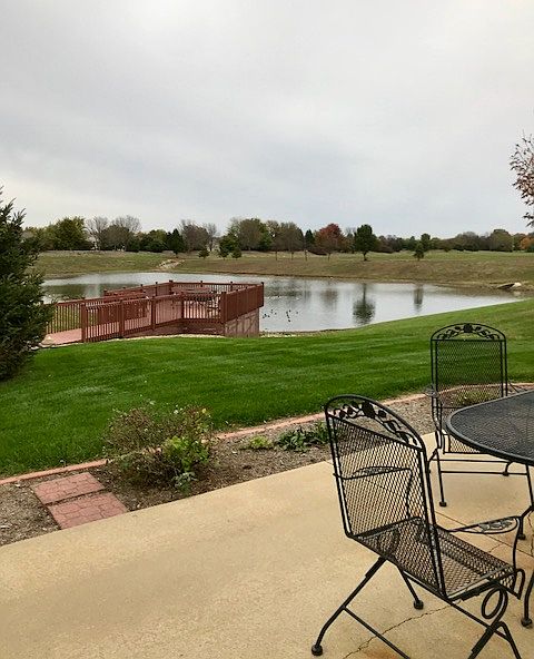 Great water view, with no maintenance outside! Large corner lot. Customized home that belongs to original owner, custom kitchen cabinets, Corian countertop with barstools and sink, large walk in closet in master bath, laundry room. HOA dues include lawn care, mowing, irrigation and snow removal. Easy access to the dock deck that have seating and the gazabo from this lot location. Large pantry closet in the kitchen. All appliances, including washer & dryer, custom blinds and drapes stay with the home. 50 plus community.
