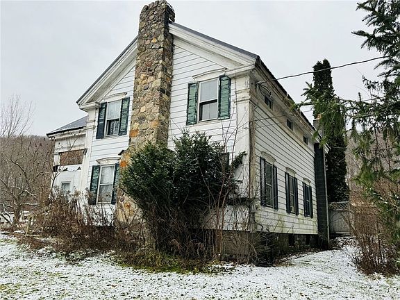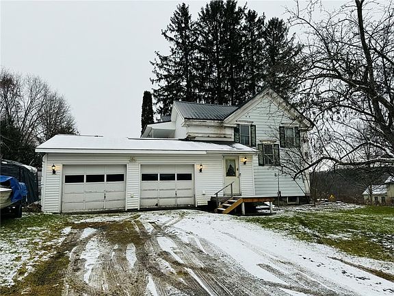 This 1885 Farmhouse, you'll notice the attached two-car garage, providing ample space for vehicles and storage. Inside, the large kitchen is a chef's delight, boasting generous counter space and storage, ideal for preparing meals or entertaining guests. Adjacent to the kitchen, the formal dining room serves as the perfect setting for intimate dinners or festive gatherings. The heart of this home is the massive living room, featuring a stunning stone fireplace that not only adds character but also provides warmth during the colder months. It's an ideal space for relaxation or hosting lively social events. The property includes a barn that, while needing some work, offers incredible potential for various uses such as a workshop, additional storage, or even a creative studio space. One of the most remarkable features of this property is its extensive acreage. The land includes trails that connect directly with the Groton Trail System, offering endless opportunities for activities. Enjoy the village of Groton electric rates and be very close to the high school and 2 tax parcels convey! This home is being sold as is and is worth the work to restore it to its original beauty!