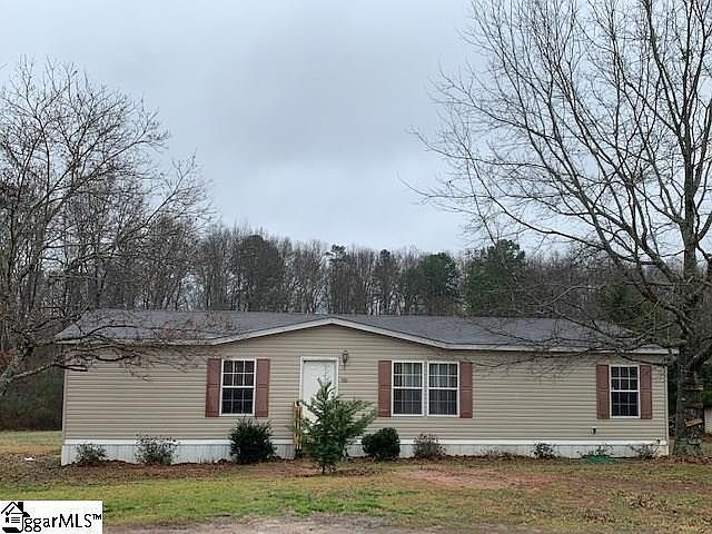 Call Bennie Boykin for a personal tour! What a great opportunity to own this 56' x 32' mobile home on 1.42 acres in Greer for this price! Home features a split floor plan with master on one side and three bedrooms and hall bath on the other. The great room is large with built in cabinetry surrounding a place for your TV. The large kitchen has plenty of cabinets and counter space plus a nice breakfast area for family meals. The walk in laundry room is right off the kitchen. The master bedroom is larger than one would expect, and the bath offers a large walk in shower, garden tub and large closet. The small building on the right of the home holds the well pump. There is a building in the back with an awing cover. Lots of potential for use of the land. Look at the wooded back drop! Seller is in the process of having the home detitled. The foundation is not FHA certified. Home is being sold AS IS but don't let that stop you. The potential is here to make this a great place to call home! This opportunity of a 4 bedroom home and the acreage won't last long! Schedule your showing today!
