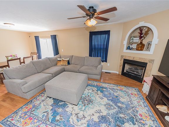 Welcome Home! This Stone and vinyl townhome is an end unit with a corner lot located in Chelsea Glen. The large kitchen has stainless steel appliances, ornate backsplash, pantry shelves and a peninsula with stone finish and plenty of room for a few stools. The laundry room is off the kitchen which makes doing your laundry a little more convenient. The dining room and family room combo has great space for entertaining and a gas fireplace to cozy up by on those cool days. The dining room leads to the large deck with access to the rear yard. Upstairs hosts the Master Bedroom with it's own bath and walk in closet, 2 additional bedrooms and the main hallway bathroom. The garage has been turned into a 20x16 game room which is perfect for a play area, entertaining or home schooling.  There is also a storage area on this level.