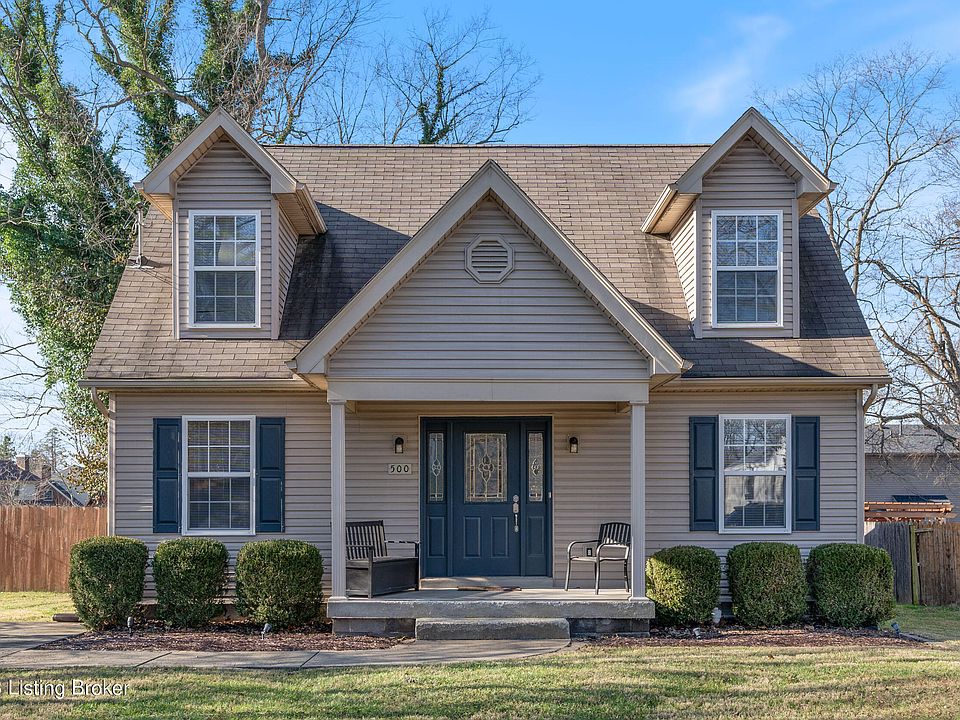 New Listing in a great location! This home offers 3 beds and 2 full baths with the primary bedroom on the first floor. This Cape Cod home is located on a large lot on a dead end street. There is a front porch, a deck, and a fully fenced backyard (partial wood privacy fencing and partial tall chain link fencing). Inside, you will appreciate the beautiful tile flooring, updated paint, and lots of natural light in the living room and the gorgeous eat-in kitchen which offers a full suite of appliances, granite countertops, and a stone backsplash. The primary bedroom and full bath are found on the first floor. You will love the walk-in closet and barn door that gives access to the full bath! Upstairs, you will find two bedrooms and a full bath, all with updated paint and flooring. The location can't be beat with easy access to Shelbyville Rd. and Middletown near a variety of shopping and dining options. Request your showing today!