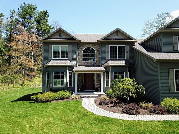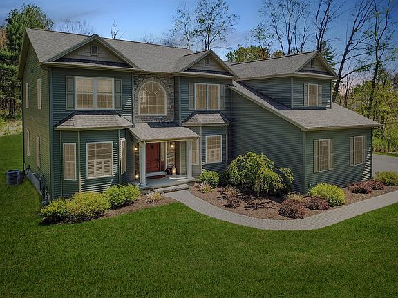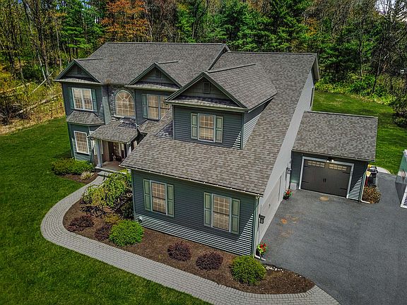 A spectacular custom home awaits your arrival! You will love your 20 foot vaulted ceilings soaring over your stunning great room with full floor to ceiling stone fireplace. High end gourmet kitchen featuring beautiful quartz stone, custom cabinetry, tile back splash and spacious center island with an additional rinsing sink. First floor bedroom and full bath make the perfect guest or in-law quarters. A dual staircase makes access to the second level a breeze. Spacious master suite with both his and her walk-in closets. Warm your toes on your luxury, radiant, heated master bathroom floors featuring a glass surround shower, and beautiful soaking tub to unwind after a long day. Fire up the barbecue all summer on your new patio overlooking a private back yard, set on 4.7 lush acres. Call today