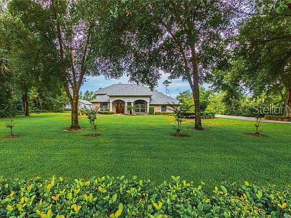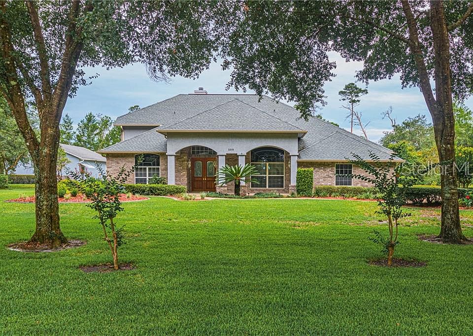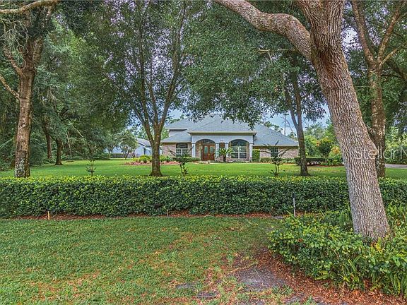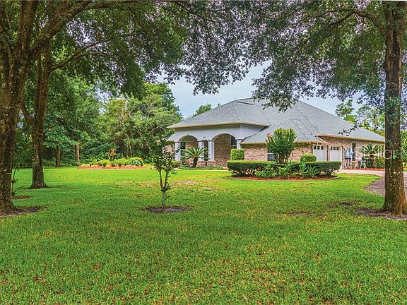 Beautifully appointment Custom Home built with quality in mind. This concrete block & Brick home is situated on 3+ acres in quiet area just off Lake Winnemissett Drive. As soon as you reach the beautiful open front porch, you see the solid Wood double doors which gives you a inviting feel. The foyer is expansive with beautiful new wood floors & 14' ceilings. The living room is bright and open & the dining room has wood floors with open views to the living and family room. The inviting family room has wood floors, beautiful stone gas fireplace and custom built-ins & opens to the large lanai with four sliding doors that completely open up. There is a private office just off the foyer with French doors (has large closet) with custom built in and large open window for plenty of natural light. The master bedroom has custom built-ins and access to the lanai. The master bath has double sinks, jacuzzi tub, & glass shower. This is a split bedroom plan with the second bedroom having it own bath (perfect for guest) & the forth bedroom is located upstairs and could be a bonus room or large play room. Custom blinds throughout the home. New roof and gutters were recently installed. Attached oversized two car garage plus 50x30 insulated detached concrete block workshop with 9 x 10 roll up door for boat or RV. Plus a 20x10 metal building and a 10x16 shed. The yard is beautiful and private with sprinkler system and beautiful oak trees. This home shows quality and has been loving maintained.