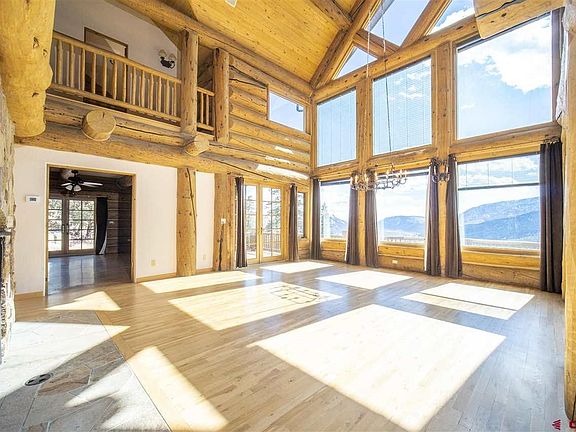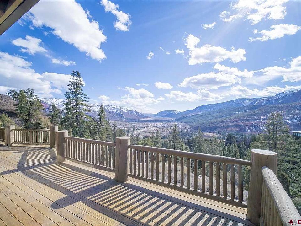If you want to feel "on top of the world" without driving too far from a main road, then this gorgeous log home will be your perfect match. Located just a quick drive up a paved road from Hermosa, the first thing you see is this houses wall of windows, and a huge deck that seems to be towering over the cliff. When you enter the home, you turn to that same wall of windows, and in front of you is the Animas Valley with it's red cliff's and fertile valley, under a blue bird sky. With plenty of space for everyone this log home has a formal dining room, large kitchen, nice sized owners suite, upstairs bedroom and loft, and a two car garage. The home has a massive wood burning fireplace that spans floor to ceiling in the great room. It also has a formal office if you are looking for a work from home space that provides quietness and separation. Have you been looking for something you can VRBO? This home would be a great opportunity, as there is a private door and stairwell from the garage that enters into the current loft area that could be easily converted to suited guest quarters/lock off space. This home has GREAT proximity to the local PJ's market, Dalton Ranch Golf Course, or quick access on the main highway to Glacier Club and Purgatory Ski Resort. This home is being sold as- is, and priced accordingly. This property is on two parcels one that encompasses the house, and a vacant lot. Please note that when researching tax parcels and public information. Inquire with agent for further details.