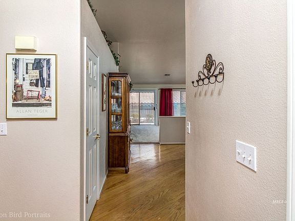 Located in the highly desirable Mesquite Mesa Subdivision. Vaulted ceilings are found from the moment you enter the townhome throughout the kitchen, living room and master bedroom. Popular open concept floor plan enables kitchen to be within full view of the living room. Kitchen is very spacious and includes refrigerator, oven-range, dishwasher and microwave. Living room has a sliding glass door that brings you access to the back patio. This townhome offers a "unique" custom expandable and retractable covered awning....when you want the warmth of the sun simply extend it. When you desire additional shade in the afternoon...extend it. Master Bedroom in this floor plan is the largest offered within this subdivision. Large picture window in the master bedroom brings in additional light. Master walk-in closet is "very spacious". Master Bathroom is extra wide making it handicap accessible "if needed". Guest bathroom and Guest bathroom are on the other side of the townhome providing privacy for both guest and homeowner. One car garage. HOA has a beautiful pool area for relaxing and enjoy our beautiful desert climate.