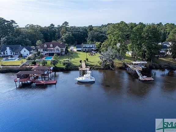 Live on the water in a fully updated, amenity packed home, with a low cost of ownership. This 3BR/3BA home overlooks the Ogeechee River yet is not in the floodplain and is not subject to city taxes. Dock your boat with existing 30A shore power and take afternoon cruises to Fishtales Restaurant/Marina or wander through the former Ford rice canals in search of the perfect fishing spots. The home features oversize, dual oven natural gas range, dual dish drawers, built-in fridge, and white marble countertops. Visit the wet bar, complete with ice maker and beverage cooler, before walking out to your screened porch with sunken hot tub overlooking the river. The community has a private boat ramp and storage yard and is less than a mile from Publix. Roof, HVAC, and exterior paint are all less than 2 years old. This home also has mature lime, grapefruit, tangerine, and peach trees, and raised gardens for those with a green thumb. True coastal living with convenience and the best schools.