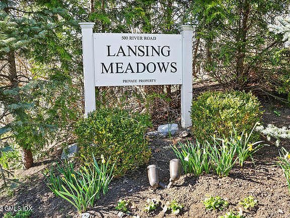 Beautiful corner 3-bedroom Townhouse in desirable Lansing Meadows......sliding doors from updated, eat-in kitchen and living room to deck to picturesque back garden which abuts conservation land.....oversized primary suite with sitting area and built-in desk....walk-in closet/dressing area and upstairs balcony......one of 24 units with clubhouse and outdoor pool. Lovely living/dining room with built-ins, wet bar and fireplace.....2-car attached garage....newly paved driveway.....picture perfection every way.