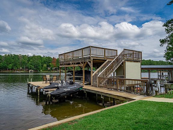 Beautiful Lake Home on Sinclair with 100 feet of Shoreline. Three levels for tons of entertaining space. Custom Built with vaulted ceilings. Master suite on the main, great room, dining room and kitchen are all open concept. Dramatic vaulted ceiling in the great room that carries through to the covered vaulted lakeside. Oversized porch on the lakeside for outdoor dining. Two guest bedrooms upstairs with bath, one bedroom with bath on terrace level with game room, media room and large bar for entertaining. Double boat house with a max dock and boat house deck. Large open lakeside yard for fun and games. Large Concrete driveway. Near Goat Island. You won't want to miss this one, call to schedule an appointment today!