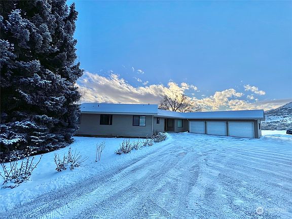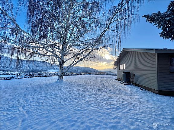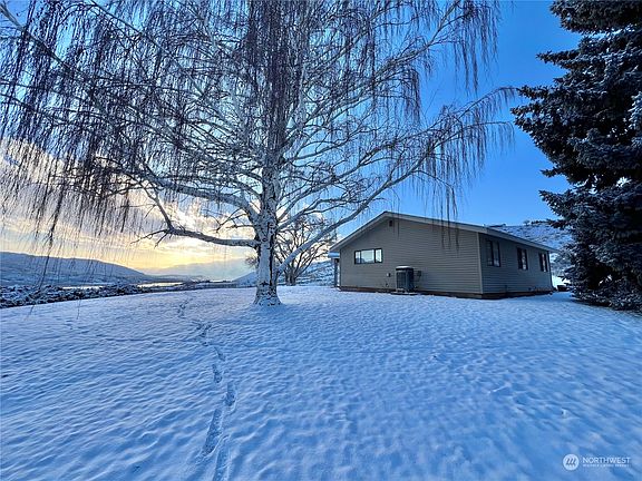 BREWSTER - Riverview Heights - IMMACULANT VIEWS OF RIVER & MOUNTAINS. Mature landscaped 3.23 acres 2500+sqft 4 bed/2.5 bath rambler with attached 3 car garage. French style front door leading into tiled entryway. Living room w/vaulted ceilings & wood beams. Tiled dining room with chandelier. Double sided brick wood burning fireplace to experience the comfort & ambiance from two separate spaces. Kitchen w/eating space and additional living room. Primary room with full bathroom en-suite. Laundry room with utility sink & half bath off garage access. 2 heat pumps/2 HWT for each side of home. 600+sqft unfinished basement & storage room. Paved driveway. Sprinkler system. Shared well. Septic. Private road to dead end. $484,900 MLS-2192113/H-3209