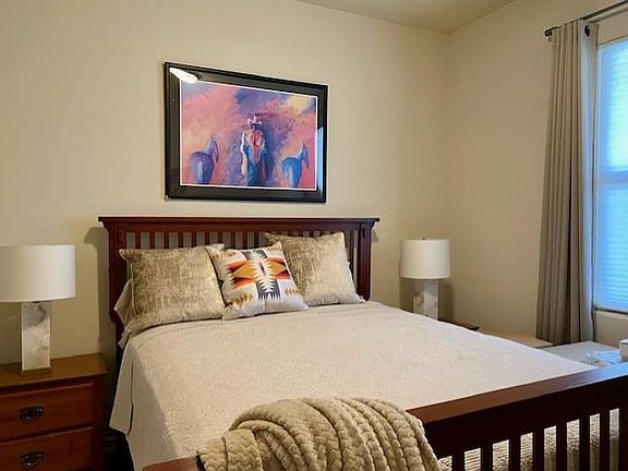 Beautiful and cozy, immaculately clean and sizable 1200 SqFt upstairs condo offers relocating to Santa Fe easy and convenient. Two bedrooms currently, (one could be converted to office or studio, good size kitchen) two full baths, plus generously sized entry room, would make you happy and appreciative of the spacious layout of this apartment. Tastefully and comfortably fully furnished condo with all amenities create very inviting feeling right away and make it easy to call it home.