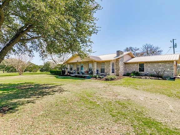 This home sits on 1.9 acres and is surrounded by views of our Texas Hill Country. Enjoy the quiet in the sunroom lined with windows, adjacent to the back porch, overlooking endless landscapes and true Texas Longhorns as the sun rises. Relax in the front porch as the sun sets. Features a metal roof and livestock corral with hay shed on back property. This quiet setting is close to town and minutes away from Highway 29 and 183. Updates: foundation repair w/lifetime warranty, interior paint; new garage door.