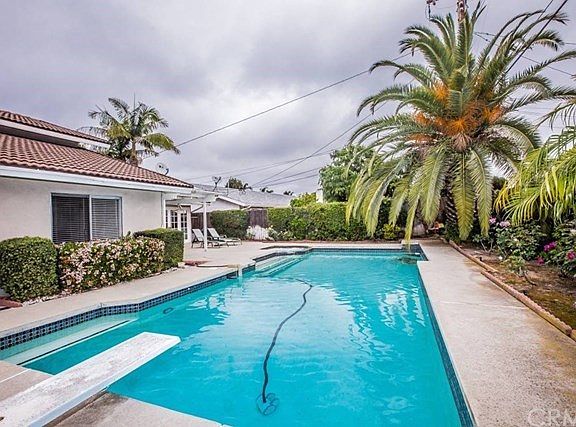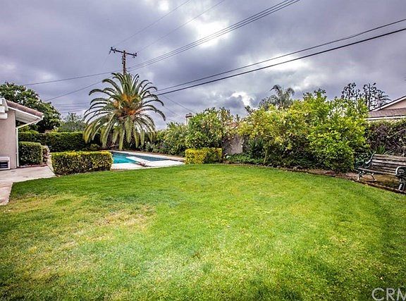 Charming neighborhood on mature tree lined private street. Large flat lot with sparkling pool, garden area, fruit trees and with room for RV parking. Spacious Main floor master with 5th bedroom option on main floor (currently being used as an office on main ground floor/ w built in cabinets). Master bathroom has spacious double marble top sinks with separate shower. Separate Main floor laundry room near master bedroom contains wash sink w lots of cabinets for storage. Front patio has private courtyard and lead glass double door entry. Open floor plan to living room and extra large eating and family room. Kitchen has eating bar and recessed lighting. A sky light in kitchen provides lots of natural light. The second floor has three comfortable bedrooms featuring vaulted ceilings and a large full double sink bathroom. European windows are tilt opening. Perfect for large family or someone who wants to design their own dream home or expand existing property. This floor plan rarely comes on the market in this neighborhood. Priced to sell quickly. No HOA and Non-contingent motivated seller!