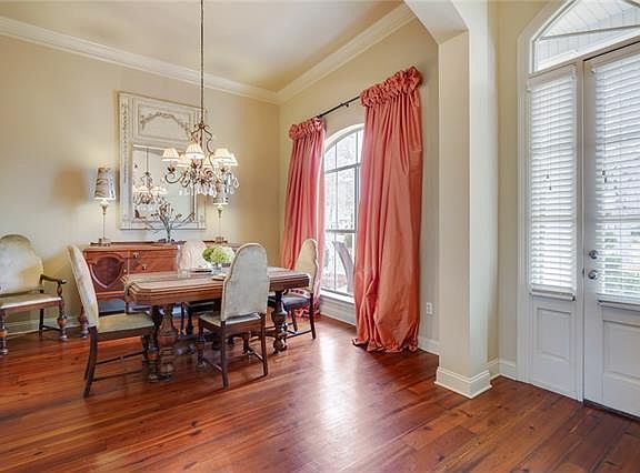 French Country w/exquisite landscape & high end finishes. 5 bdrm, 3 ba + Gameroom. All brick & stucco w/gutters & new roof. Lux Mstr bdrm w/custom closets & lavish bath. Exceptional island Kit w/custom cabs & hood, stainless & slab granite. Antique heart of pine floors, custom drapes, soaring clgs + crown mldg. Cov brick front & back porches. Flagstone patio & walkways. Extra storage in dble GA. Tajmahal dog run/house. Great neighborhood w/comm pool & sidewalks.Top schools & location!