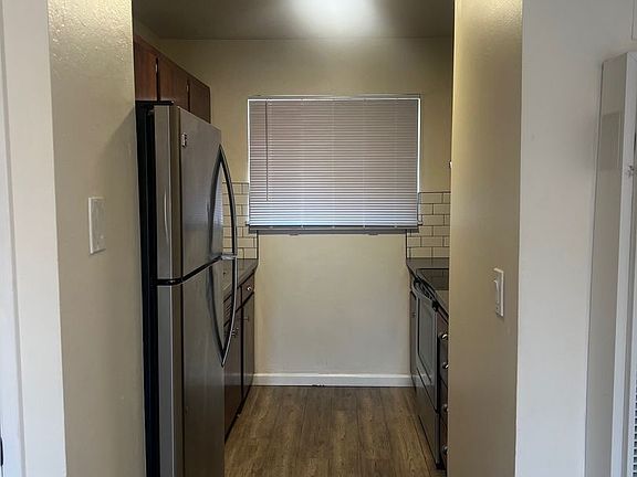 ** Move In Special, $500 off First Months Rent This charming 2nd-story, 2-bedroom, 1-bathroom end-unit condo offers a comfortable living space with fresh, newer interior paint and vinyl flooring throughout. Upon entering, you'll find your living/dining room area that backs up to your outdoor patio. The kitchen is directly off the dining area that has stainless steel appliances installed. The bathroom has been previously remodeled as well. The rent includes water and garbage services. Enjoy the convenience of an onsite coin-operated laundry facility for your laundry needs. This home is available on a month-to-month lease, offering flexibility, and street parking is available. Please note, no pets or co-signers are permitted. Make this cozy condo your next home!