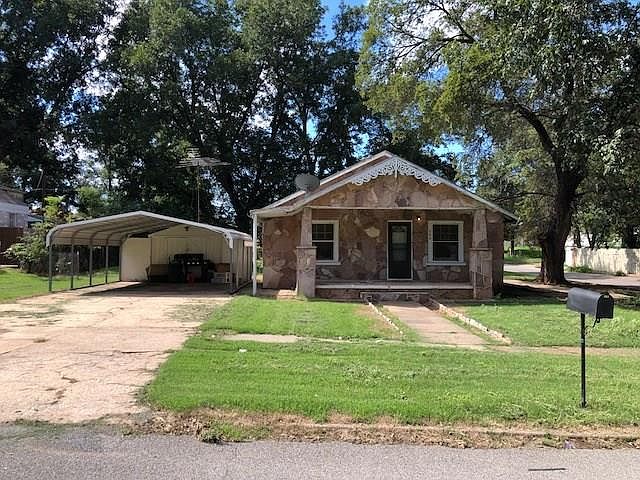 Great investment property. This is a stone 2 bedroom home with one extra large bathroom, storm shelter, storage building in back, fenced in back yard, 2 car carport, corner lot. Come see it.