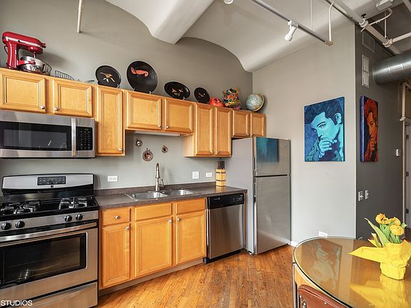 Charming 1 bedroom/1 bathroom condo at Clinton Complex in the popular West Loop neighborhood. This unit features high ceilings, stainless steel appliances, in unit w/d and a balcony that is perfect for grilling. Price includes an outdoor parking space and a storage unit. Building has a 24 hour fitness center, office space, door staff, on-site dry cleaners and a bike room. Clinton Complex is located in one of the West Loops most coveted areas, close to the blue line, Union Station, The Loop, Greektown and so much more! Buyers agent must accompany buyer. Tenant occupied until end of June. Must give 24 hour notice to view property. New balcony door to be installed. $734k+ in reserves, no special assessments. Property qualifies for a homeowners exemption.