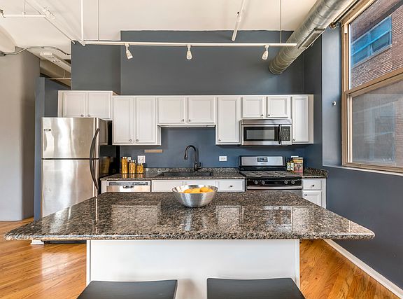 Oversized 2Bed, 2Bath corner unit condo in the West Loop! Both bedrooms are fully enclosed for privacy (pictures show one bedroom lofted but it's been fully enclosed now). This well-maintained bright east facing condo has wall of windows for tons of natural light, 11ft high ceilings, granite countertops, large island, updated kitchen with SS appliances and dedicated dining space, hardwood floors throughout, fireplace, and a balcony for grilling and enjoying the summer. Building offers door Person, on-site management, fitness center, bike room, storage & dry cleaner lockers. Amazing central location close to Greek Town, Fulton Mrkt, Medical dist., restaurants, shopping and multiple grocery stores. Walking distance to Loop, Union Station & Ogilvie Station, steps to Blue Line (Clinton Stop), easy access to all expressways (90/94/290). Heated garage parking additional $150. Rent covers basic cable and internet. Minimum 12 months lease period or longer. Move-in, move-out and deposit per association requirements. Application credit & background check. Tenants are required to carry renters' insurance.