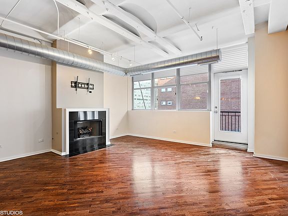 Incredible opportunity to live in one of the largest 1 bed layouts in the Clinton Complex! This beautiful East facing loft features recently refinished hardwood floors (Jan 2021), a brand new paint job (Dec 2020), high ceilings with exposed ductwork, large windows, in-unit washer/dryer, working gas fireplace, Nest thermostat, and a sizable balcony with views of Willis Tower. The open concept living/dining area is perfect for entertaining, and spacious enough to comfortably fit a desk for any home office needs. Owner updates include new stainless-steel kitchen appliances (2017), as well as hardwood and custom door additions to the bedroom (2015). Unit is rented with an oversized storage caged as well! This location allows you to embrace all West Loop has to offer, with easy access to downtown, Randolph Street (Restaurant Row), Fulton Market, Greek Town, and so much more. Feeling stir crazy? The Blue Line CTA, Union Station, and expressway entrances are all conveniently nearby to help you escape town! Full amenity building includes: 24 hour door staff, exercise room, dry cleaning, and a bike room.