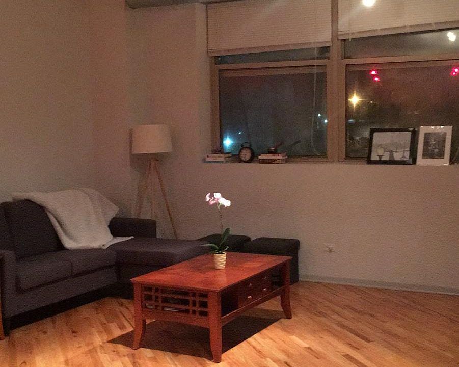 Spacious 1 bed 1 bath with open kitchen and balcony. In unit washer/dryer, dishwasher, refrigerator, microwave, fireplace. Very close to Blue line and CTA bus stops. 24 hours building security and front desk services. 1 year lease starting July 1st 2019