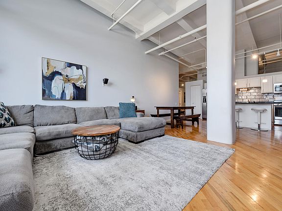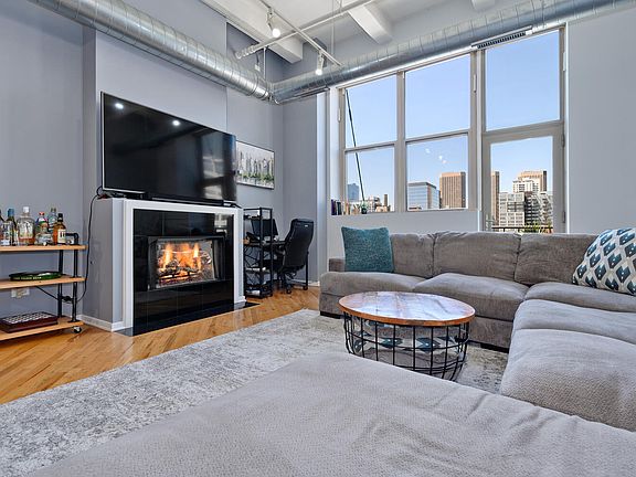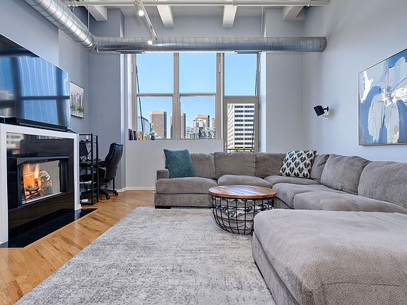 Bright updated 2 bedroom, 2 bathroom penthouse concrete loft with 13 foot ceilings, large 11x5 balcony with incredible city views and 2 parking spaces available. Open floor-plan features a white kitchen has granite countertops, custom backsplash, under cabinet lighting, stainless steel appliances and an island with breakfast bar. Huge 25x16 living/dining room has a gas fireplace with granite surround, is wired for sound and has 11ft of floor to ceiling windows with automated blinds. Primary bedroom with 3 large closets and spa like marble bath with double vanity, granite countertops and walk-in shower with glass enclosure. Adjacent generous ensuite 2nd bedroom with plenty of room for a desk. Proper foyer with 6ft walk-in closet and access to the in-unit newer washer/dryer. Diagonal hardwood floors, custom lighting and automated blinds, open floorplan and storage. Seller has two parking options available: 1 heated garage parking space $25K and/or 1 exterior parking space $15K additional. Parking does not have to be purchased with unit. Building features courtyard, fitness center, 24hr door staff and pet friendly. Close to the Loop, West Loop, restaurants, shopping, transportation and expressway. Pet Friendly!