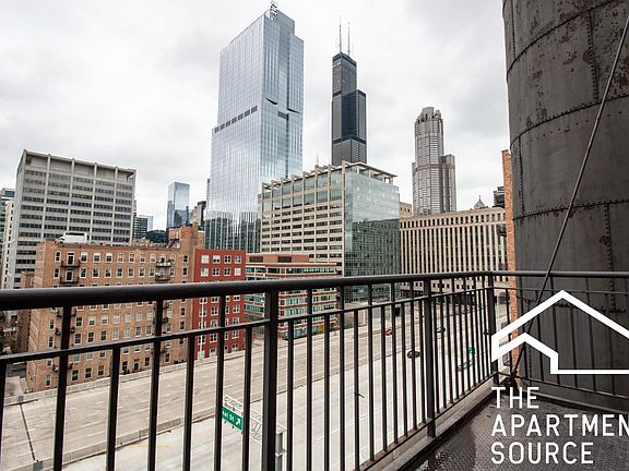 Large 2 Bed 2 Bath Top-Floor Corner Unit Condo Featuring: * Two walls of Chicago skyline view windows in the South Loop. * 14 ft ceilings, gas fireplace, stainless steel kitchen appliances and granite countertops. * Newly Refinished Diagonal hardwood floors * The primary bedroom has walk-in closet with Alfa organizers and bath with double vanity, marble and granite. * French doors off second bedroom * Private balcony looks directly into the city. * In-unit laundry. * One indoor garage parking spot and storage locker included * 24 hour door person, full workout facility and drycleaner. * Includes Basic cable and internet. * Close to Printers' Row, Greektown, UIC, the river, lake and work! * Easy access to expressways and Union Station. * Blue line subway stop is steps away.