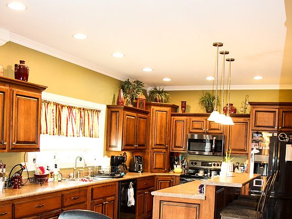 23 Ac, Beautiful 3-5 BR Ranch. Includes a 60x42 heated outbuilding, finished quarters w/ heated flooring, kitchen, gas stone fireplace, 3 horse stalls-plenty of room to entertain or store all your favorite toys or equipment. Features natural lighting, and exquisite crown molding throughout. Master bath, jacuzzi tub, walk in shower. The kitchen has an abundant of radiant custom wood cabinetry.Basement also has distinctive custom cabinets in the kitchen area and the expansive bar. Cross fenced pasture, gates throughout, a pond, 170x280 outdoor arena that has an alleyway and an automatic roping Shute.The land comes with anautomatic water tank, frost free water tank and garden shed. Continuous hot water heater, heated flooring in the basement and main level tile floor. Near golf course.