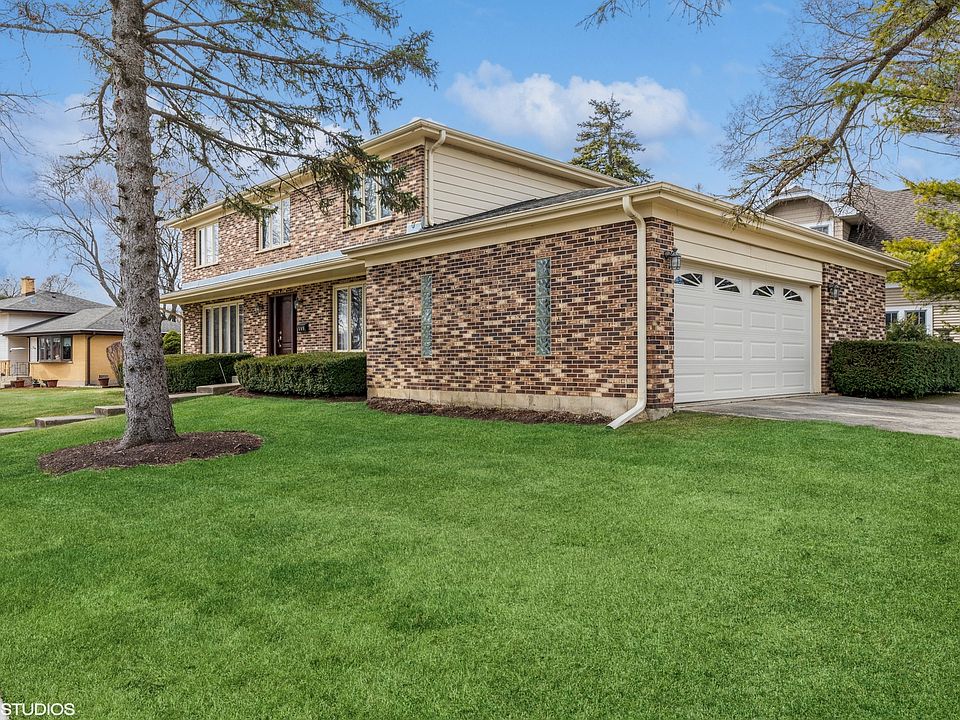 Four Bedrooms Two Story contemporary home featuring additional first floor bedroom/office. This home is totally updated. New kitchen, 42" cabinetry, stainless steel appliances, quartz countertops with island. Hardwood floors throughout first and second floor including kitchen, foyer, hallways and bedrooms. Updated bathrooms. First floor spacious family room, stone fireplace looking through patio door and private backyard. Separate formal dining room and separate spacious living room. HVAC approximately 10 years. Roof replacement 2014. Newer mahogany front door. First floor laundry room with closet Two & half attached car garage, wide concrete driveway Custom built, original owner & Pride ownership. Large corner lot! (See Plat of Survey) Close to Downtown Mount Prospect, walk to train, restaurants, shops, new developments & more. Shows like a model. Lifetime family memories waiting. Thousands of dollars of upgrades!