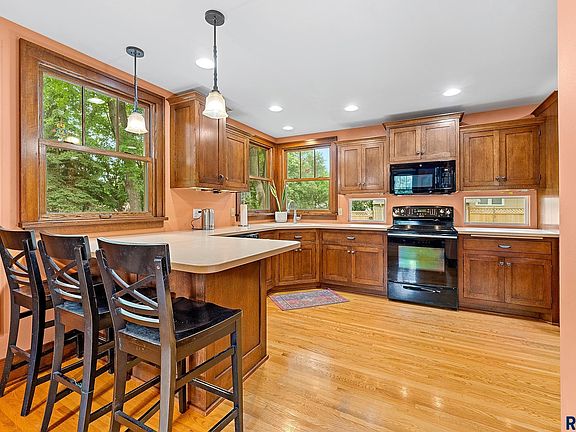 Welcome to this charming 2-story home, filled w/thoughtful updates & flowing design, nestled in a prime central Sioux Falls location, brimming w/character! The upgraded kitchen features breakfast bar, custom cabinetry, wood flooring, & natural light from numerous windows. You will cherish the cozy hearth room w/stone-surround FP w/French doors opening to the large formal dining. Main level features fabulously sized living area w/gorgeous wood accents & floors & a convenient half bath. Upstairs, 3 coveted bedrooms await, all on the same level, providing ample closet space, along w/full bath. The LL offers tremendous space w/walk-out family room, addn’l non-legal bedroom, full bath, & large laundry/drop zone area. The home also boasts 3-stall size garage w/2 garage doors & sits on a spacious corner lot featuring new cedar fence, mature landscaping, lovely paver patio, a garden to enjoy, as well as a coveted front porch. This delightful home is just waiting for you to make it your own!