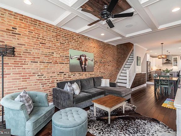 FORMER CORNER STORE CHAP TAX CREDIT RENOVATION W/ GARAGE & HIGH END FINISHES - located next to Patterson Park this 14' wide end of group features an abundance of natural light with nearly 10' ceilings, exposed brick, hardwood floors, coffered ceilings, barn wood accents, designer 8' island kitchen w/ quartz counters, under cabinet lighting w/ glass backsplash, commercial grade GE Cafe appliances w/ 6 burner gas range, whole home audio system with amp, two zone hvac system and garage parking for compact car or carport style parking for larger vehicles. Upper level offers 3 large bedrooms, walk in closets, wet bar, hallway access to roof deck with park views. Finished basement with two large rooms, full bath & large laundry room. Appraised twice in 2018 for $545,000 & $555,000 = instant equity, 10 years on chap credit beginning July 1, 2019 with huge 10 year savings!
