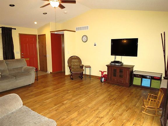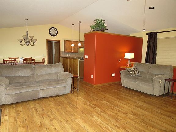 Wonderful, custom built ranch home available in Valley Center School District!!! Vaulted ceilings and beautiful, newly installed hardwood floors greet you upon entering. The dining and living room areas both feature lovely views to the lake just behind the home. The kitchen features an eating bar, pantry and stainless steel appliances that remain with the home for the lucky new owner. The home features a split bedroom plan; just off the living room area is a nice size master bedroom complete with a window seat. The master bedroom has its own full bath and walk in closet. Make your way through the living and dining areas and you will find two additional bedrooms and another full bath. Main floor laundry and a two car garage finish off the main floor. The walk out basement has been partially finished and is ready for the new home owner to come in and add the finishing touches to make it their own! The rec room area features a custom wet bar with granite countertops that is just begging for a get together!!! There are two bedrooms and a half bath that have already been completed for you. Also there is an ample amount of storage in the basement. It's wired for surround sound as well! The exterior features a fully fenced yard, nice size deck, lake views, and plenty of parking with the addition of an extra concrete pad for 3rd car parking. Buyers, this home is located in an eligible area for a Rural Development Home Loan! Making this home an easy choice for those that qualify, this means little to no down payment for the buyer to own this home! Sellers are highly motivated, see and make an offer today!