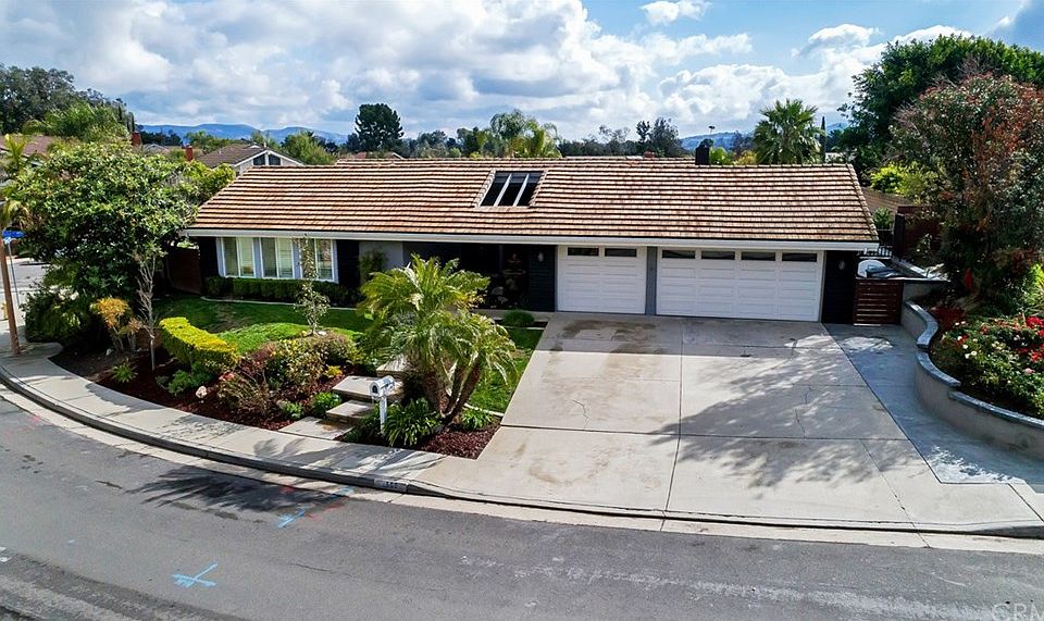 500 S. Tumbleweed is a turnkey single level home located in the desirable Westridge community of Anaheim Hills. Situated on an elevated 10,000 sqft corner lot on a cul-de-sac street, this location is hard to beat. It provides openness and privacy, making it perfect for intimate gatherings and entertaining. Enjoy full sun over the pool in the summer and serene mountain views from the master bedroom and kitchen. As you enter through the dutch doorway to the main entry of the home, you will find an open floor plan and vaulted ceilings with views to the backyard and plenty of sunlight. New wood-tile floors connect all the main living areas to the bedrooms and bathrooms. The remodeled kitchen has granite counters, full glass tile backsplash, and stainless steel appliances including a wine fridge. All the bedrooms have premium plush carpeting and most of them have wood moldings. The hall bath has been remodeled with new flooring, lighting, floating dual vanities, paint and mirror. The master suite was remodeled with a pedestal tub, separate shower with dual heads, dual floating vanities, floors, lighting, mirror and a remodeled master closet. The laundry room was redone to be on the interior of the home for convenience. Every inch of the backyard is being utilized to maximize the lot; planters narrowed, the grass and concrete re-oriented and a pool with waterfall features added. Custom California closets line the newly drywalled garage. Newer electrical panel and water heater.