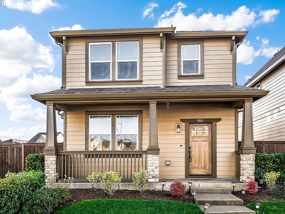 Wonderul Baseline Woods home on larger corner lot! This home features great room concept & upgraded hard wood flooring on main, gourmet granite kitchen w/stainless appliances & huge island, high ceilings & dining area w/ slider to back deck/yard. Master suite w/ walk-in closet. Laundry upstairs. Park & walking trails. Easy commute to NIKE & Intel.