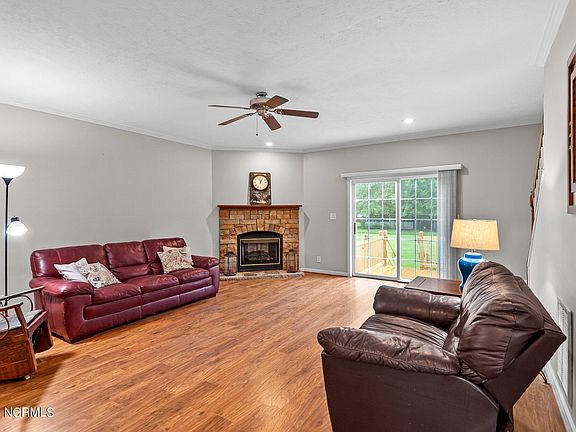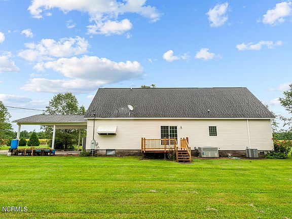 Welcome to this charming 3-bedroom, 2-bathroom home nestled on a sprawling 3.76-acre lot in the serene countryside of Grantsboro, just a short 15-minute drive from Historic Downtown New Bern. As you approach, you'll be greeted by a large front porch, perfect for enjoying your morning coffee or evening sunsets. Enter inside to find a spacious living room complete with a cozy fireplace, ideal for gatherings with guests. The kitchen is a chef's dream, featuring an island with seating for barstools, stainless steel appliances, abundant cabinet space, and a bright dining area. The main floor offers three comfortable bedrooms, including the owner's suite, which boasts a generous walk-in closet and dual vanity sinks. Two additional guest bedrooms and another full bathroom complete the main level. Venture upstairs to discover a fully finished space that serves as a versatile second living area, along with two extra rooms that can be tailored to your needs—whether it's a home office, gym, or hobby room. Outside, the deck provides a great space for grilling and outdoor dining, all while overlooking your expansive property. The home also includes an attached carport, a detached 1-car garage with a half bathroom, and an additional carport, offering ample storage and parking options. This home combines the tranquility of country living with convenient access to all that New Bern has to offer. Don't miss the opportunity to make this peaceful retreat your own! Call us today to schedule your private tour.