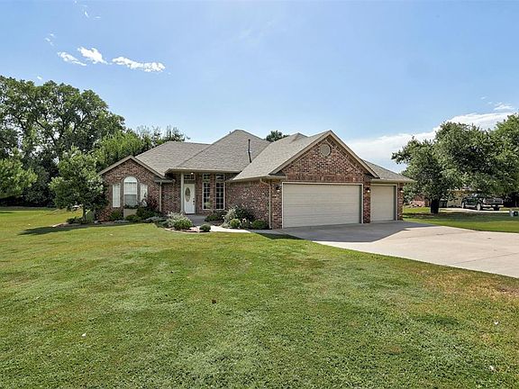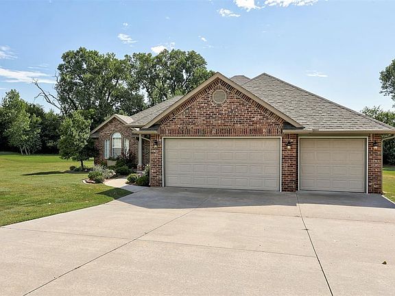 Absolutely stunning home located in the Fox Run Addition of Blanchard! Located on a Cul-de-sac street, this home and property offers the best of both worlds - convenience of being in town while still offering the space of 1.04 MOL Acres! No HOA and room for a shop and pool! As you enter the home you're immediately drawn to the high ceilings and crown molding complimented by the neutral paint tones throughout that really brighten up the room with natural lighting. This 3 bed, 2bath home with a split floor plan offers two dining areas and an open kitchen to living space. The kitchen features updated SS appliances, ultra quiet dishwasher, granite countertops, and an undermount sink. Off the front entry provides a great space with option to use a play area, study, or formal dining room. The master suite offers a spacious en-suite bath with double vanities, jetted tub, shower, and oversized wrap around walkin closet with built-ins. The laundry room has plenty of storage, with wash sink and folding counter. The backyard is set up perfectly for all your outdoor entertaining and enjoyment. Expansive 30'x18' deck with custom metal railing and LED perimeter up lighting. Tree lined backyard creating great privacy, rustic garden area for a fire pit, and storm shelter off the back deck! Deep driveway offering parking for multiple vehicles or full-size trucks, recessed under eave lighting, updated LED lighting throughout the home, Roof & Guttering 2021, High-Efficiency 2-Stage York HVAC system 2019, added insulation in attic 2021, add so much more. Such a great neighborhood with easy access to all that Blanchard has to offer and quick highway access for commutes to OKC Metro!