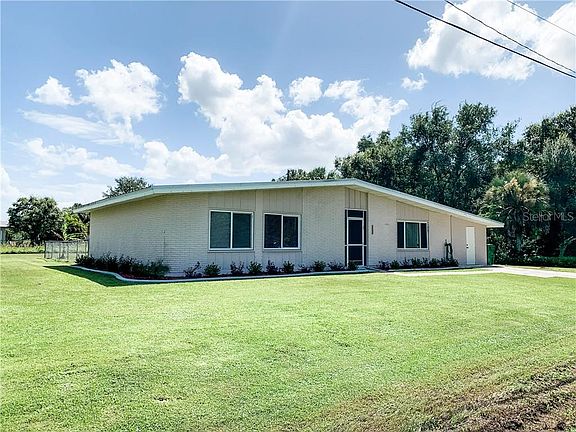 Just reduced. Motivated seller !! "Like a rock" is the best way to describe the construction of this three bedroom two bath home..The exterior walls are constructed of poured concrete with a brick faced mold making it virtually impervious to storm damage..Newer metal roof was completed in 2015 and the lanai in 2018. Located on a large corner lot this home is spacious with a "wide open" feeling. In addition it has an updated kitchen and master bedroom/bath. The enclosed carport serves as a laundry room and a "bonus room" which could easily be(and once was) a fourth bedroom complete with an exit door to the side walkway. Recent concrete curbing and landscaping set off the exterior along with the fenced back yard.