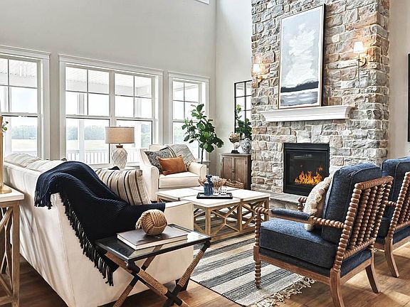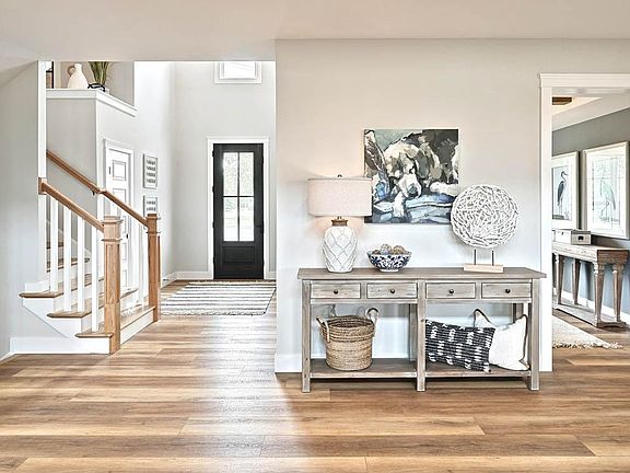 Designer details abound in this 2-story home featuring a 3- car, side-load garage with mudroom entry. A dramatic 2-story ceiling creates a grand first impression in the foyer, where elegant vinyl plank flooring extends throughout the main living areas. Just beyond the foyer and dining room with wood beams, the 2-story great room is warmed by a gas fireplace with stone surround and opens to the kitchen and breakfast area. The kitchen, accented by wood beams, is well appointed with upgraded appliances and cabinets, quartz countertops with tile backsplash, and a large center island and pantry. Off the kitchen, the breakfast are opens to the generous screened-in deck. The floor plan also includes a study with French doors and cathedral ceiling and a finished bonus room in the basement for an additional flexible living space. The first-floor owner’s bedroom with tray ceiling detail opens to a private bathroom with a tile shower, freestanding tub, double bowl vanity and expansive closet. On the 2nd floor is a loft overlooking the great room, 2 full baths, and 3 bedrooms with spacious closets.
