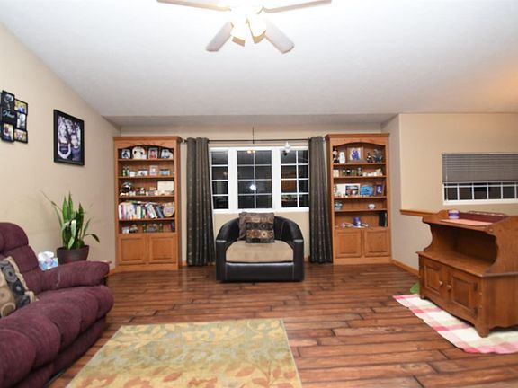 This Mike Wilson custom built home sits a quiet neighborhood on a corner lot. Open concept with vaulted ceiling, spacious living room, kitchen with an abundance of cabinetry, breakfast bar and sliding doors that lead to a covered deck in the back yard. Master suite with walk in shower, double closets, 2 additional bedrooms on the main level, as well as 2nd full bath. Newer flooring in kitchen, living areas and family room. Lower level has a mini bar, large spacious family room, laundry room with l/2 bath, utilities. 2 car attached heated and cooled garage with shop area. New 96% Central heat and 3 ton air unit. Small utility shed stays, larger shed does not stay. In ground sprinkler system. Exterior was painted in 2015. Partial privacy fence, corner lot, great location, no specials. Average utilities gas/air $225 mo. Room wired for surround sound. 20x20 patio area, 14x12 deck in back.. 30 year heritage shingles in 2016.