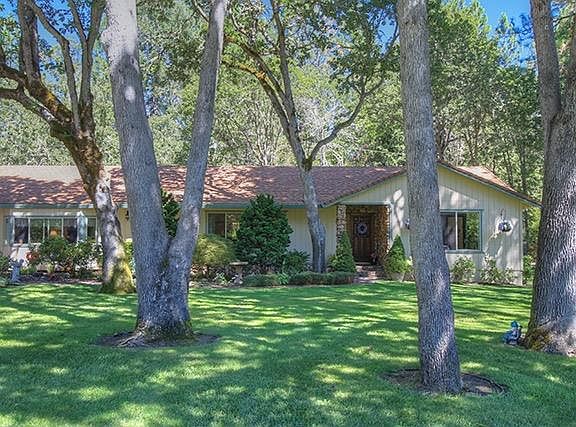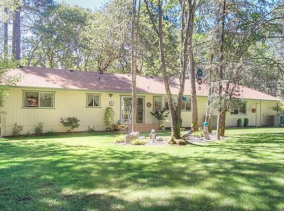 Fantastic Single Level Home set in an incredible Private Park-Like setting on 5 acres in Williams. Super Clean Home features an inviting Open Floor Plan and includes Living and Family rooms, Large Bedrooms, and a nice sized Dining Area. Home is Light and Bright with lots of windows and is very welcoming. Recent improvements over the past few years include all New Vinyl Windows, fresh Exterior Paint, New Kitchen and Bath Flooring, New Roof and Gutters, 2 New Heat Pumps, In-Ground Sprinkler System, and a complete Land Survey. Attached Finished 3 Car Garage w/shop space, plus an additional separate finished 18'x16' Shop/Garage, Carport. Several Storage Sheds. Generator Back-up for Home. The grounds are fantastic with Expansive Manicured Lawns, Towering Trees, and Beautiful Mature Landscape. A Fenced Dog Run, a variety of Fruit Trees, Privacy from all neighbors, and Level Useable Land make this even more appealing. Bring your discriminating Buyers to see this immaculate Home and Property!