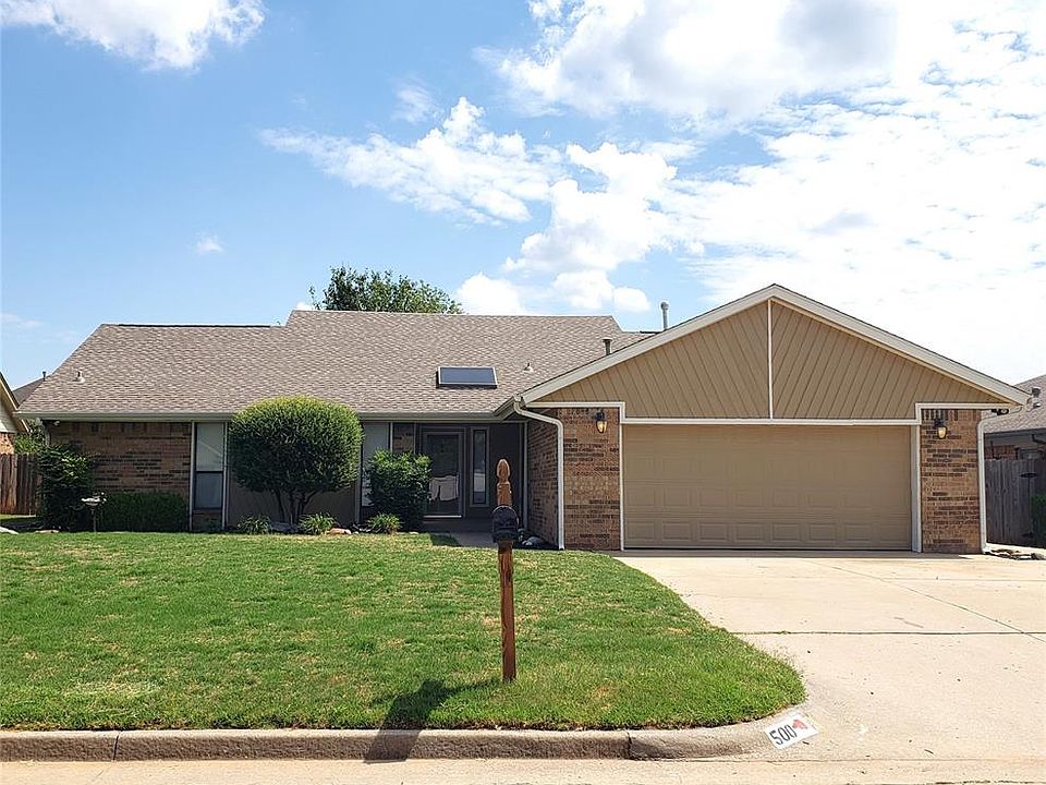 Wonderful, new listing in Three Oaks Addition! Updated & Move-in ready! Soldier Creek/Carl Albert School area. 3 bedrooms, 2 bathrooms, 2 living areas, 2 car garage. Approximately 1,852 sq ft. Spacious living room featuring a vaulted ceiling, classy stucco fireplace and ceiling fan. Nice kitchen featuring great counter space with granite, island/breakfast bar, walk-in pantry and large dining area. Master suite is spacious and features a great wrap around closet and private bathroom. There is also a 2nd living area that would make a nice study, hobby room, etc. Nice inside utility room featuring great storage space and counter space. Other features include a covered front porch, privacy fenced backyard, storage building & *****STORM SHELTER*****.