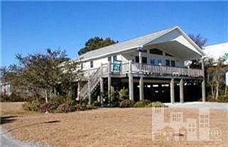 A nice comfortable neighborhood - Carolina Sands. Home is located on a corner lot 1 street away from community pool,tennis,children's playground,& clubhouse. Plus easy walk to beach - this community has their own deeded, private beach access. Low monthly fees of $21. Sit on the large covered front deck, hear the ocean & enjoy the summer breeze. Plenty of parking for family and friends. Note the ground level has 2 storage areas - one is plumbed for a full bath. Open and airy living area w/ vaulted ceiling. Sreened porch off of master bedroom. Builtin book shelf in hall. Fireplace. New heat&air system 2008. Sprinkler system. Nice spot to call your place at the beach.
