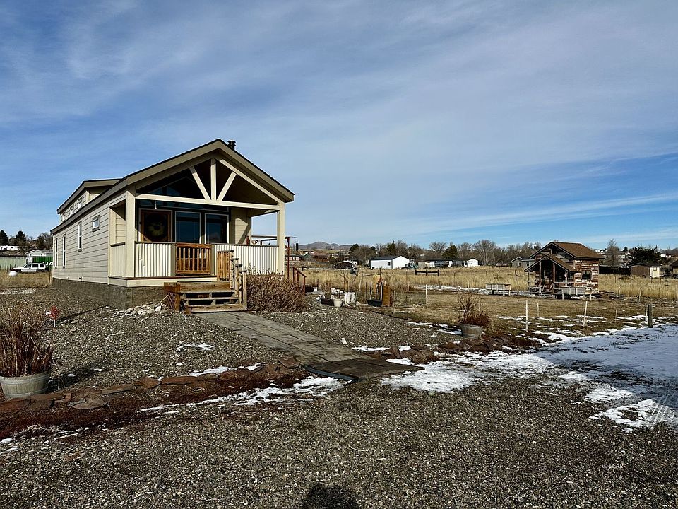 This charming 2-bedroom, 1-bathroom manufactured home offers a cozy and inviting living space. The unique feature of a loft entrance with access in the first bedroom adds character and extra space. With 2x6 walls, this home provides excellent insulation and structural integrity. As you step inside, you are greeted by the spaciousness of the 12-foot ceilings, which create an open and airy atmosphere. The living area features tons of windows, woodstove, and open floor plan with upgraded kitchen cabinets and backsplash. For those who want or need extra storage space, a 10x16 workshop with power is included on the property. A fully fenced yard ensures privacy and security, making it an ideal space for pets. Outside there is an insulated/heated doghouse. You will appreciate the presence of 11 willow trees and russian olive trees on the property with drip system to all the flower beds and garden as well. The exterior of the home boasts a beautiful, covered porch, providing an ideal spot to relax and enjoy the surrounding natural beauty. An uncovered deck offers the perfect space for outdoor gatherings, barbecues, or simply soaking up the rubies! Extra bonus, the playhouse stays!