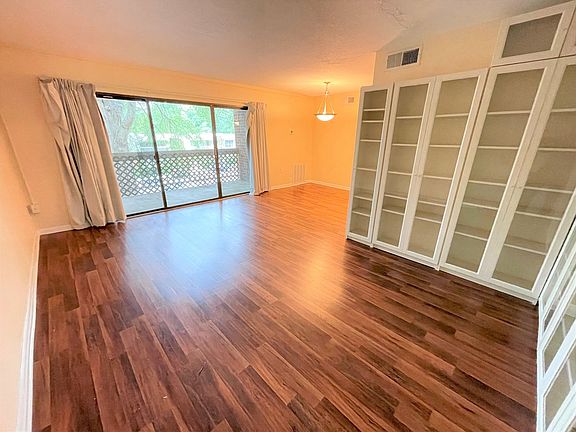 This lovely unit features 2 bedrooms, 1.5 baths and has been updated with new appliances, flooring and more. The spacious floor plan boasts a large open living / dining area, with some very cool built-in shelving in the living room for decorative displays and added smaller-item storage. The living area features sliding door access to a large covered patio with a nice view of the neighborhood. The kitchen comes fully equipped with sleek modern appliances, lots of cabinet and counter space, and a large shelved pantry. Great natural light throughout. Central AC/Heat.