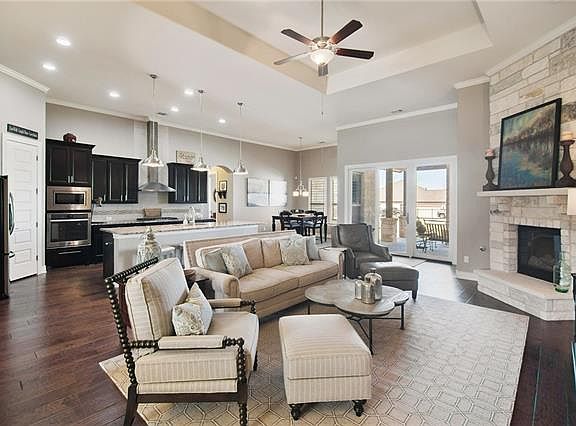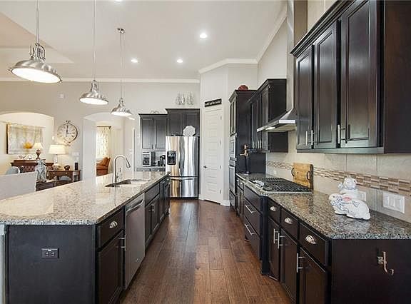 Exquisite design for a luxurious life-style--this lovely home is move-in ready with the designer finishes you want & over $100K in after-builder upgrades. A masterfully designed plan allows for possibilities-- the stunning kitchen is central to the home, w/living spaces flowing onto a patio built for Texas BBQ's w/grill, sink & fireplace! A master retreat w/spa-like amenities--2 closets, 2 vanities, soaking tub & an unbelievable shower! Outdoor LED lighting+an add'l detached garage for 5 enclosed spaces!